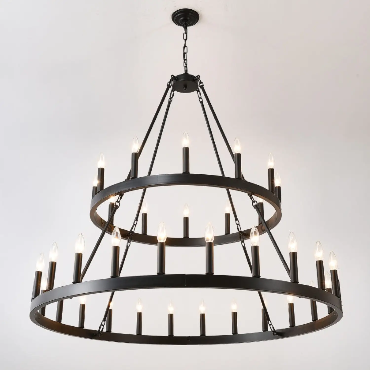 Its 2-tier wagon wheel design with 36 lights creates brilliant illumination for large spaces.
